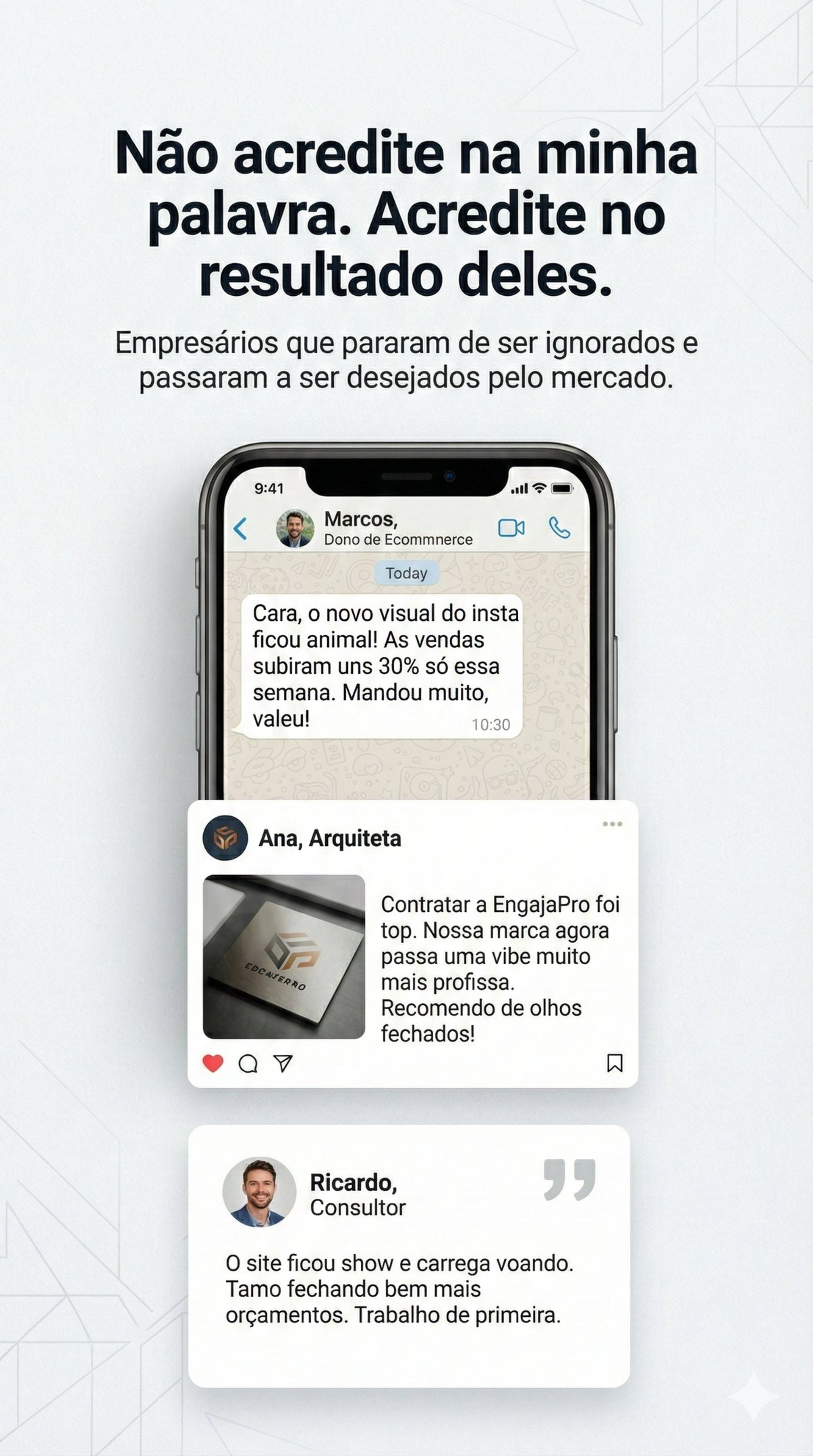 Com 26 anos e natural da Bahia, fundei a EngajaPro com uma missão clara: democratizar o acesso ao Branding de alto nível.